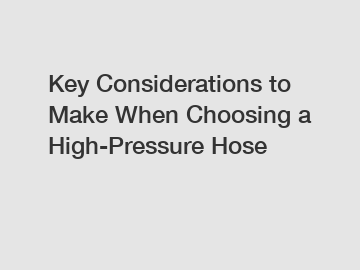 Key Considerations to Make When Choosing a High-Pressure Hose