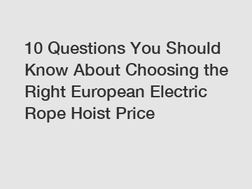 10 Questions You Should Know About Choosing the Right European Electric Rope Hoist Price