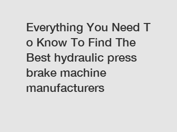 Everything You Need To Know To Find The Best hydraulic press brake machine manufacturers