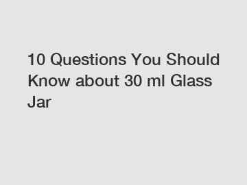 ## 10 Questions You Should Know about 30 ml Glass Jar.