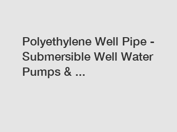 Polyethylene Well Pipe - Submersible Well Water Pumps & ...